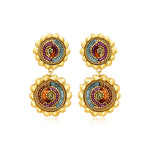 Graphiques et lumineuses, les boucles d’oreilles Angèle revisitent la forme ronde dans une composition équilibrée et élégante. Leur top rond brodé se prolonge par un pendant également rond, créant une silhouette harmonieuse et emblématique de la collection. Entièrement réalisées en broderies faites main, elles associent sequins, perles, paillettes et strass cousus un à un pour former de riches arabesques. Le coloris multicolore mêle nuances de bleus, touches de vert, éclats dorés et rose lumineux dans une harmonie vibrante. Légères et raffinées, ces boucles d’oreilles captent la lumière à chaque mouvement et incarnent l’esprit couture et contemporain d’Angèle.