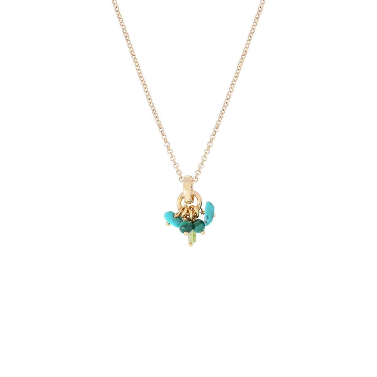 Worn on one of our chain necklaces, this women's pendant in fine gold-plated metal is a refined and timeless piece of jewelry that guarantees you won't go unnoticed. Whether worn as a short necklace or a longer version, this pendant adorned with turquoise, malachite, and peridot beads will unleash your creative flair.